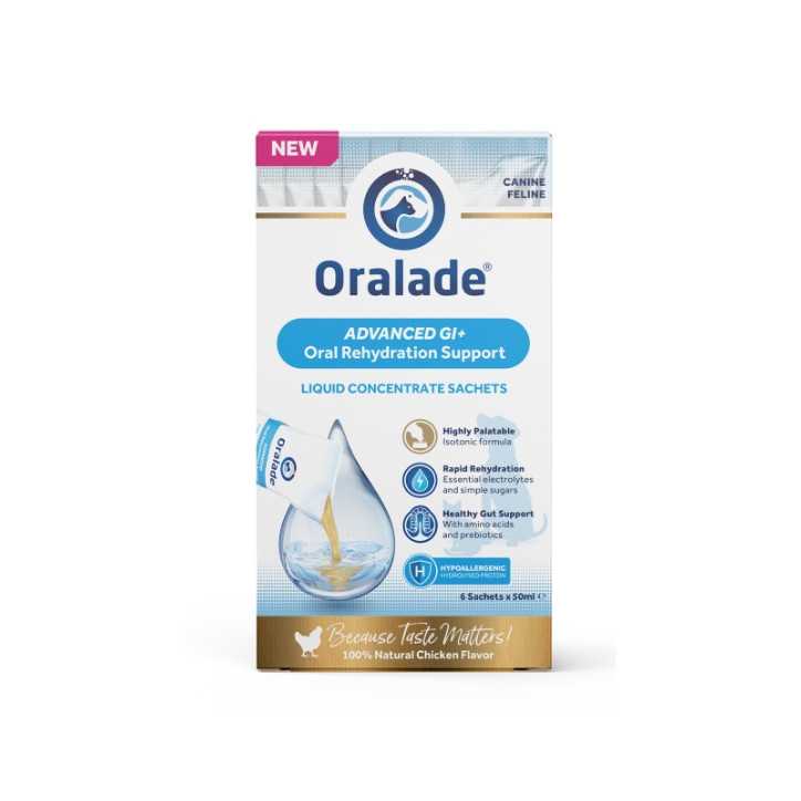 Oralade® GI+ è un supporto avanzato per la reidratazione orale (ORS) dal gusto eccezionale, con una formula isotonica unica che garantisce un rapido assorbimento di liquidi ed elettroliti. Perfettamente bilanciato per favorire l’idratazione ottimale di cani e gatti.