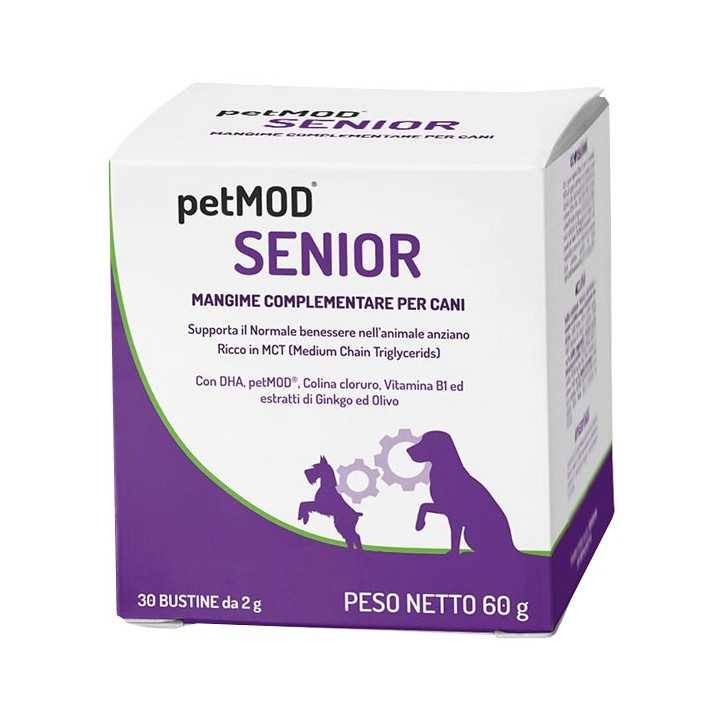Contrassegno (+3 Euro)petMOD Senior è un mangime complementare in forma liquida appetibile per cani, formulato ad alto contenuto in MCT (Trigliceridi a Media Catena) ed olio di pesce; con DHA, I-CARE, petMOD, Colina cloruro, Vitamina B1 ed estratti di Ginkgo ed Olivo per favorire il normale benessere dell'animale anziano.