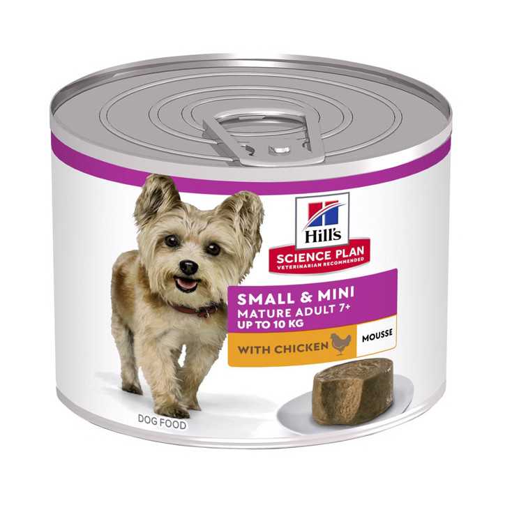 Hill's Science Plan SMALL & MINI Mousse Mature Adult con pollo è un alimento completo per cani maturi a partire dai 7 anni di età. Un'alimentazione su misura per le esigenze uniche del tuo cane di piccola taglia e per favorire un invecchiamento sereno.