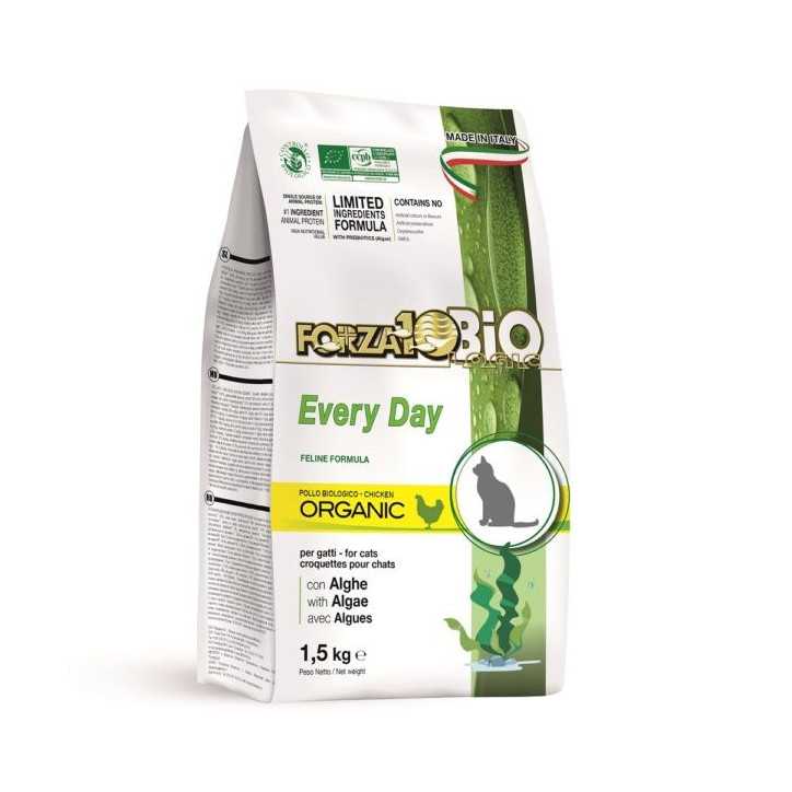 Contrassegno (+3 Euro)FORZA10 Every Day Bio al Pollo Bio con Alghe è un alimento monoproteico per gatti, certificato biologico e formulato secondo i severi standard dell’agricoltura biologica.