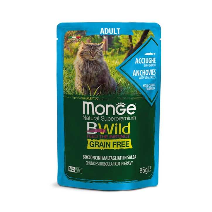 Monge Natural Super Premium Bwild Grain Free Formula per i gattini e gatti adulti di taglia grande.
