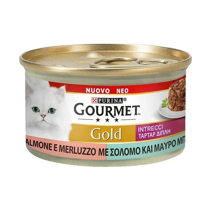 GOURMET Gold Intrecci di Gusto è preparato con pezzettini finemente sminuzzati di manzo e pollo, salmone e merluzzo, o altre varietà attentamente selezionate, insaporite con cura da un tocco di salsa: prelibate creazioni dal duplice gusto, per deliziare il tuo gatto ad ogni assaggio. Tutte le ricette GOURMET Gold non contengono coloranti, conservanti e aromi artificiali aggiunti.