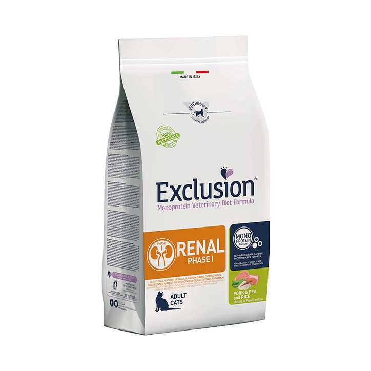 Caratteristiche: Exclusion Monoprotein Veterinary Diet Formula Renal Phase I è un alimento dietetico completo per gatti adulti formulato per il supporto della funzione renale in caso di insufficienza renale cronica. Questo alimento dietetico contiene un ridotto tenore di proteine di elevata qualità e una bassa concentrazione di fosforo. E’ indicato anche per la riduzione della formazione di calcoli a base di ossalati grazie alla bassa concentrazione di calcio, vitamina D e alle proprietà alcalinizzanti dell’urina.
